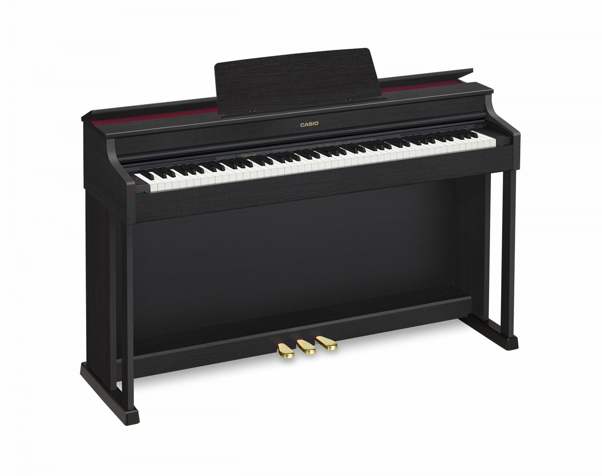 Déclinaison esthétique du modèle PX-870, ce piano Casio Celviano AP-470 propose deux nouvelles sonorités de pianos à queue très réussies, bénéficie d’une amplification 2x20w faisant vraiment la différence avec les modèles inférieurs. On trouve également un couvercle pouvant s’ouvrir comme celui d’un piano à queue, permettant au son de mieux se diffuser spatialement. Le timbre est particulièrement dense et chaleureux sur ce modèle. Les sensations du pianiste se trouvent également améliorées par le revêtement des touches blanches, en ivoire de synthèse, très sensuel sous les doigts. Le toucher léger ne permettra pas un apprentissage idéal durablement à défaut d’un contre poids suffisant sous les doigts mais un pianiste souhaitant s’évader vers d’autres contrées musicales y trouvera un compagnon de jeu très performant, doté de fonctions pédagogiques comme l’enregistreur et de 22 sonorités de très belle qualité. Enfin, la connexion avec smartphone ou tablette sur l’application chordana play apporte une dimension ludique indéniable. Les finitions générales sont impeccables et le rapport qualité / prix exceptionnel.