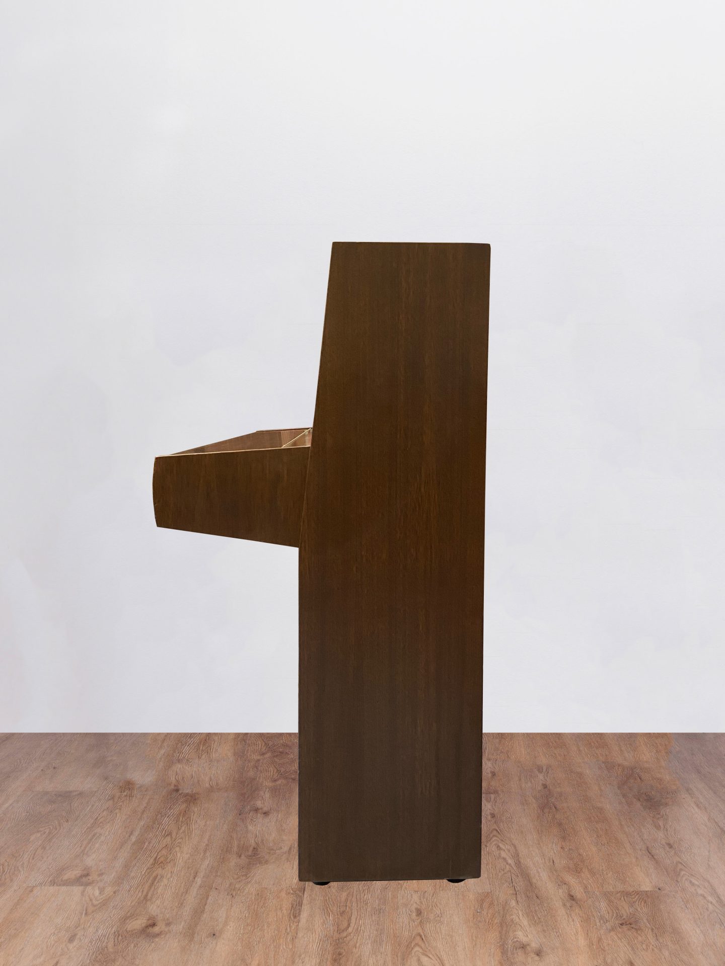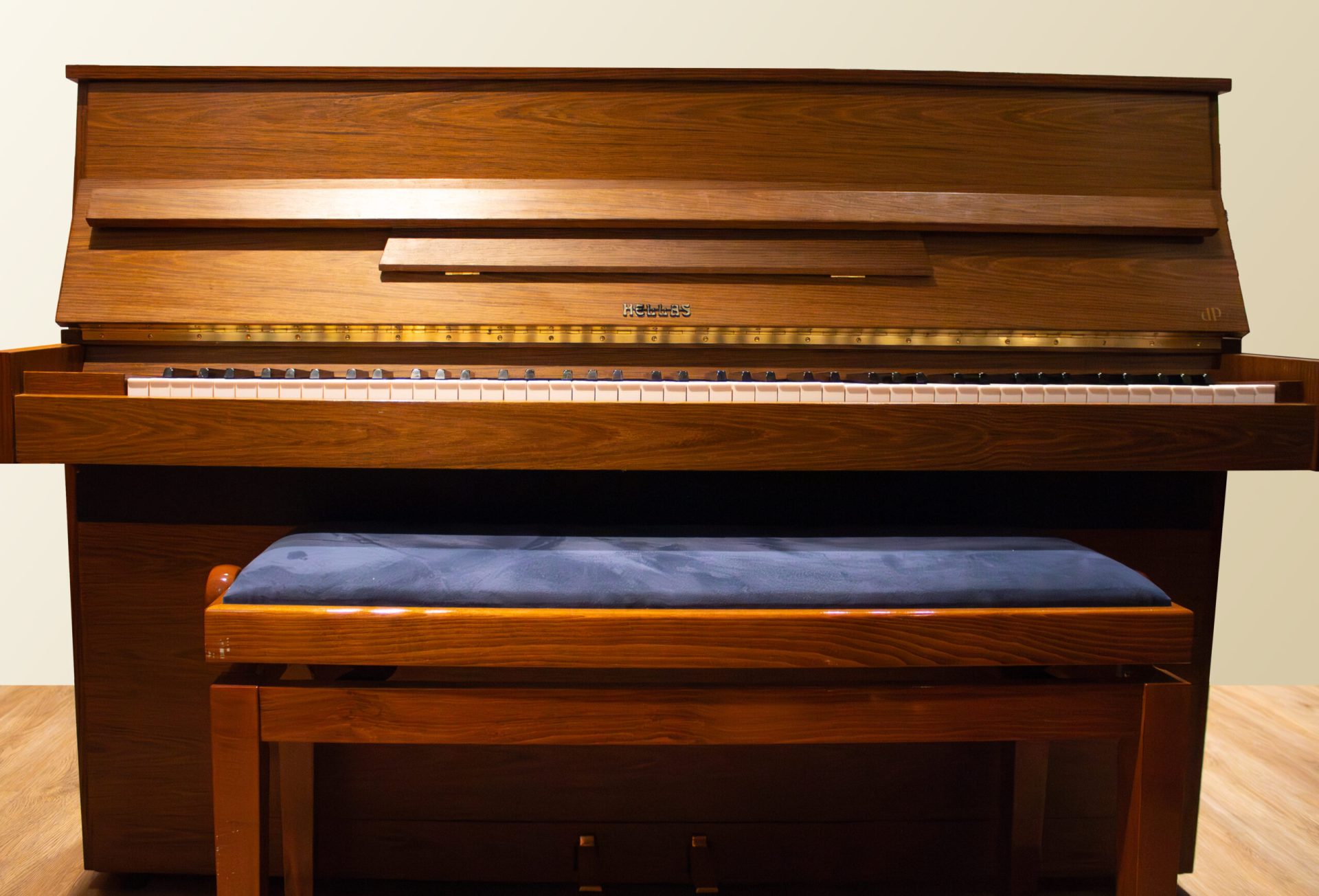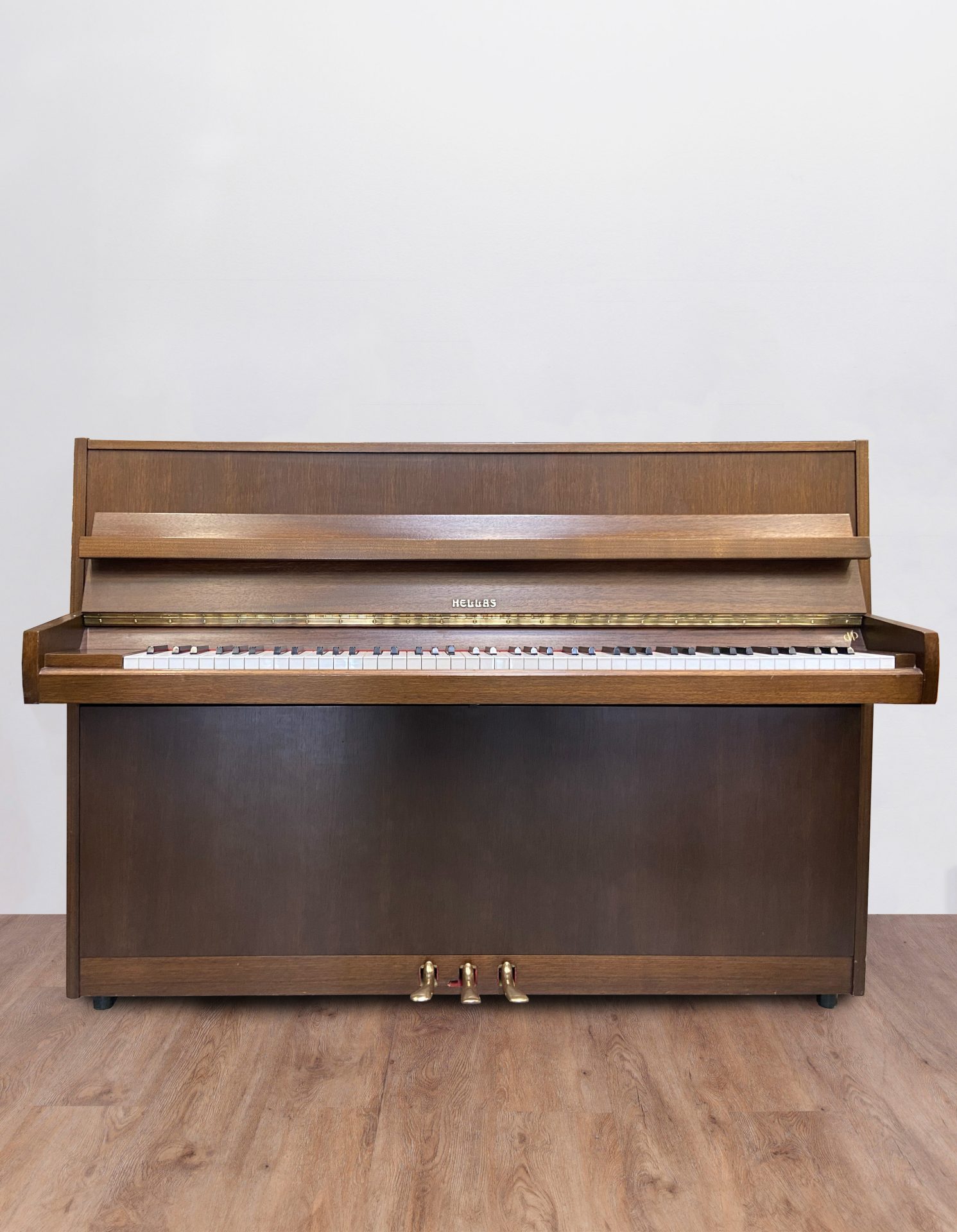 On le sait peu, mais les finlandais ont été eux aussi des producteurs d’excellents pianos, notamment à travers la marque hellas (également déclinée sous l’estampille sinding, et qui racheta en 1989 l’usine fazer), proposant alors une gamme restreinte – six ou sept modèles – dont le plus répandu fut le modèle orfeo. ce piano-ci, rare et singulier, se distingue par une qualité tout à fait exceptionnelle : il est équipé d’une mécanique renner, référence absolue de la facture allemande, prisée pour sa longévité, sa précision millimétrée et son comportement irréprochable dans le temps. le toucher y est simplement remarquable : fluide, rapide, précis, nerveux sans être sec, avec un retour immédiat et constant qui permet une grande liberté d’expression et un contrôle sans faille, même dans les passages les plus virtuoses. cette réactivité, alliée à une sonorité claire et limpide, donne à l’instrument une vraie personnalité, idéale pour l’étude sérieuse comme pour le plaisir raffiné de jouer.bien conservé et peu sollicité au fil des ans – l’état quasi neuf des feutres de marteaux en témoigne –