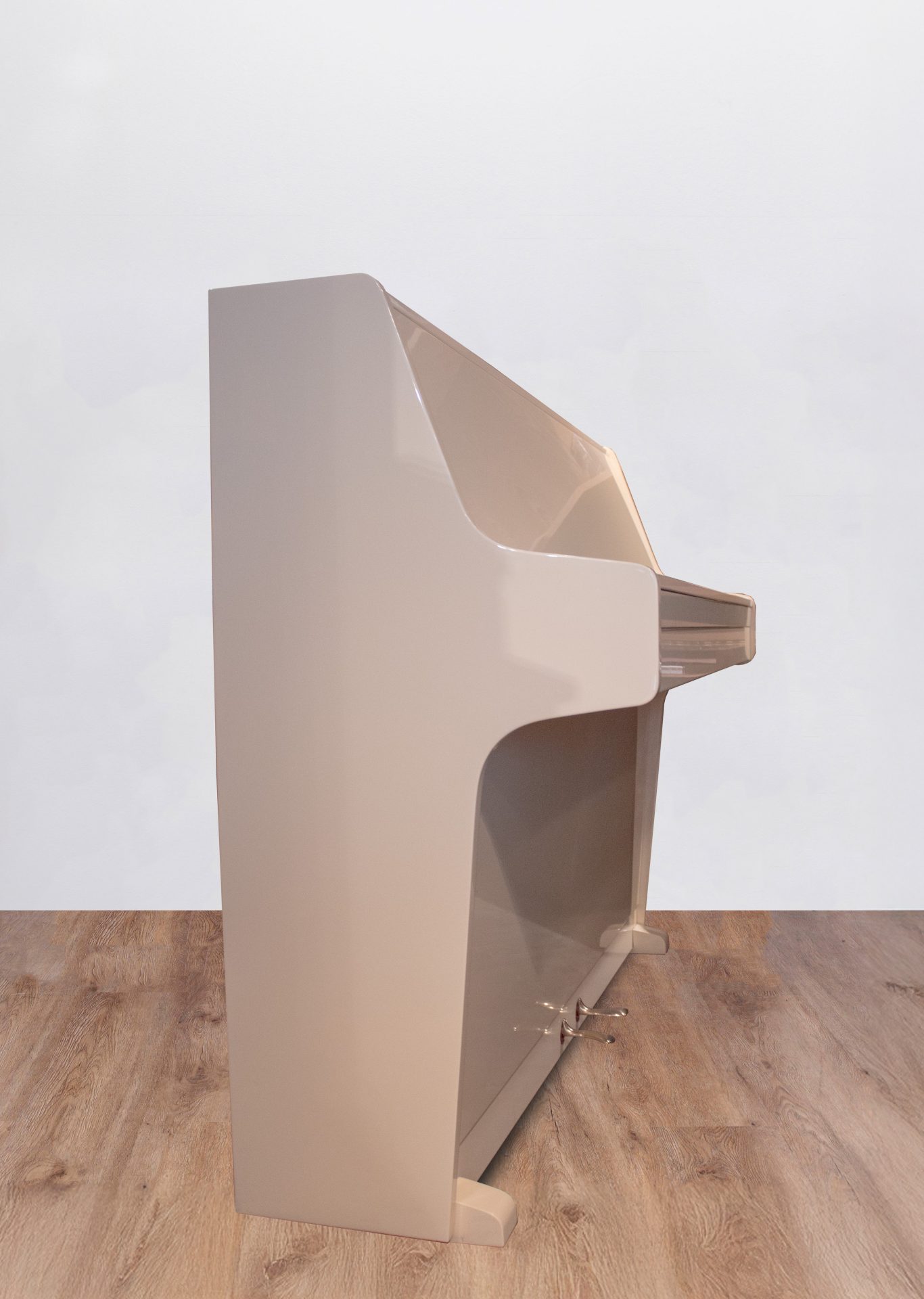 Édité en 1987, ce piano droit Rameau Briançon incarne le modèle emblématique de la manufacture française, pensé comme instrument d’étude et de salon. Sa particularité rare réside dans sa finition blanc cassé brillant, produite en très faible série, conférant à l’instrument une personnalité unique et un charme intemporel. Là où la plupart des Briançon rencontrés aujourd’hui apparaissent fatigués ou simplement fonctionnels, cet exemplaire se distingue par un état de conservation splendide, magnifié par le travail minutieux de notre atelier.