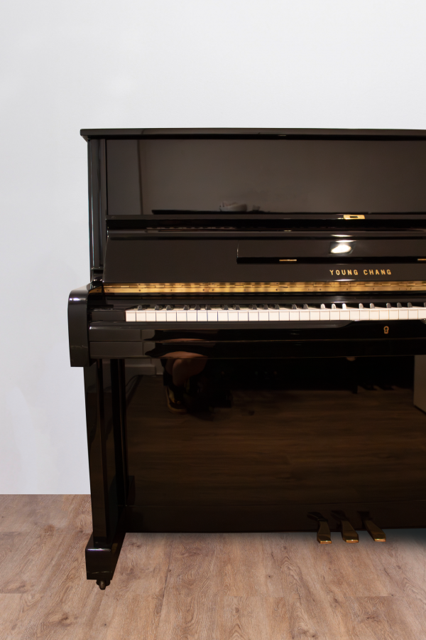 Ce young chang U121 de première main racheté en ile de france est un bon piano d’expression reconnu pour sa fiabilité. construit en corée juste avant les difficultés qu’a connu la marque dont la fabrication a été interrompue longtemps pour ensuite être reprise en chine bénéficiant ainsi de tarifs plus compétitifs. ce modèle fait partie des meilleurs pianos que young chang, arrivé au sommet de son art à la fin du siècle dernier, ait fabriqué. nos techniciens ont atténué par des harmonisations successives l’aspect métallique que revêtait sa tessiture originelle qui avait métallisé au fil du temps, notamment dans les aiguës. plus clair que velouté, ce piano offre une palette sonore vive et lumineuse qui est un vrai bonheur pour les pianistes de musique contemporaine. le toucher est léger et très régulier, chose appréciable pour un très bon rendu des nuances sans effort d’adaptation et la mécanique précise et fiable a été conservée dans un très bon état et réserve encore de longues heures de jeu dans des conditions idéales. un long travail de réglage a été entrepris sur la mécanique et le clavier pour retrouver toute l’homogénéité des sensations pianistiques. le meuble noir brillant est dans un bel état et présente un très bon potentiel décoratif. la qualité de l’ensemble est de loin supérieure à celle des pianos chinois ou indonésiens de premiers prix actuels et confère à ce bon piano d’expression un excellent rapport qualité / prix. il est garanti 10 ans, est livré avec son pack accessoires et bénéficie de notre garantie de reprise applicable dès un an.